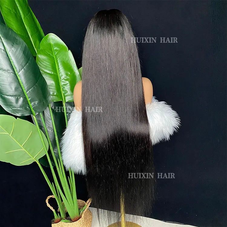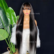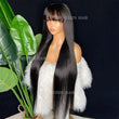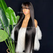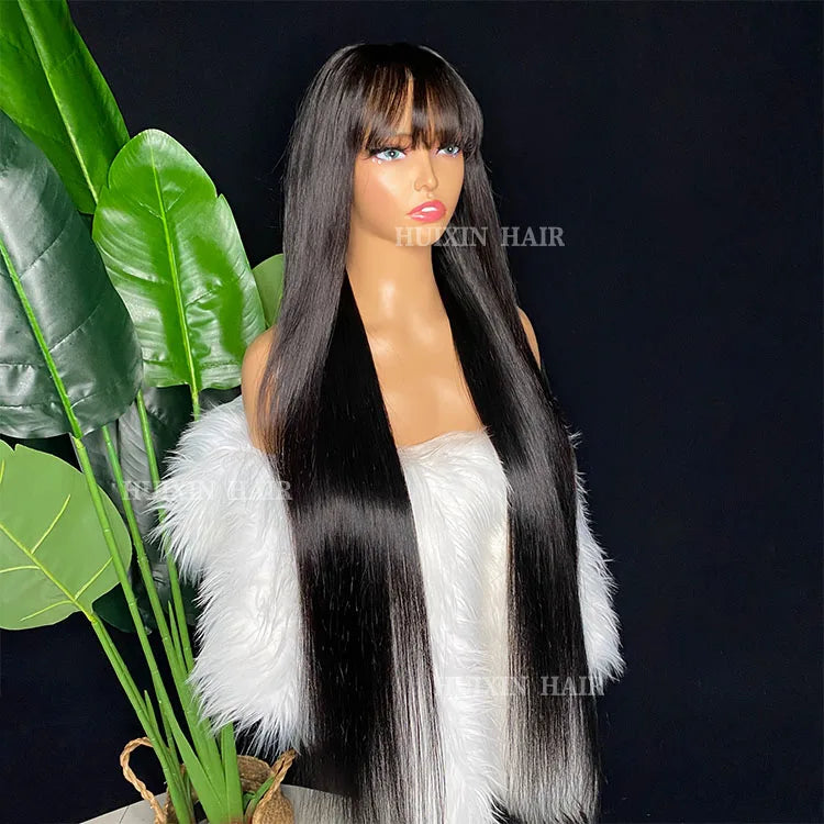 150 Density Raw Remy Virgin Brazilian Indian 100% Human Hair Straight 4x4 Transparent Closure Wig with Bang 32 Inches