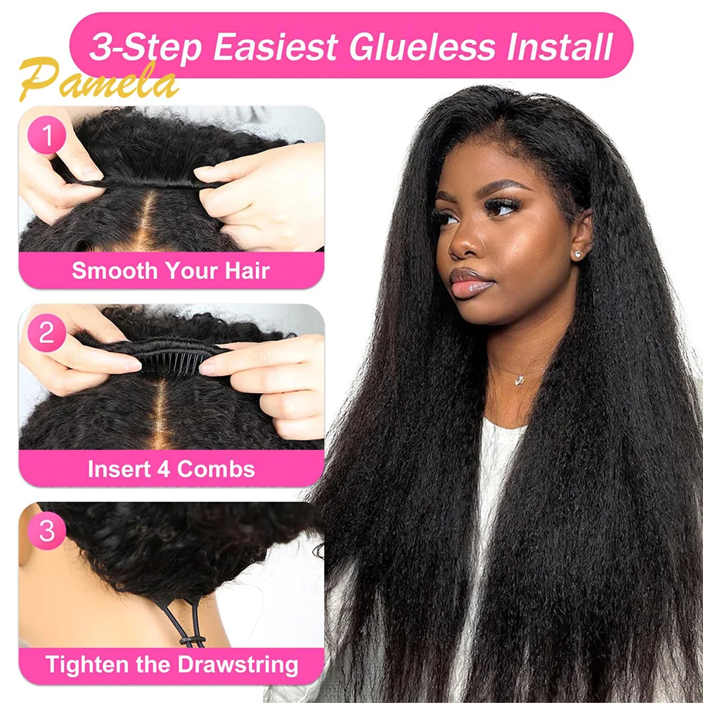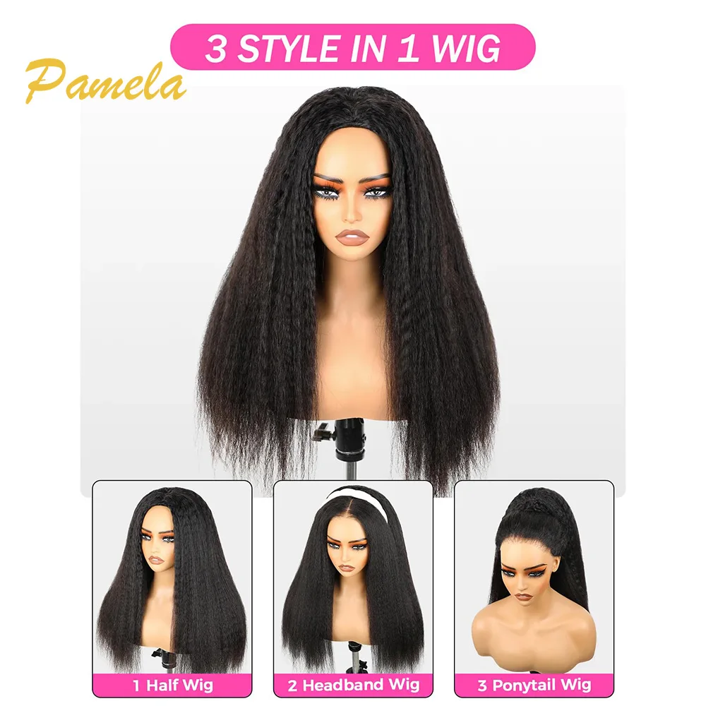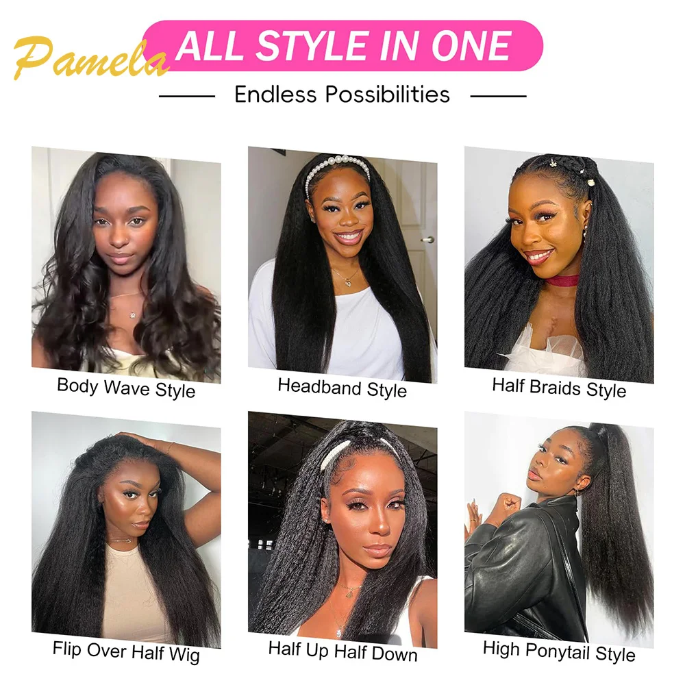 250% Density Kinky Straight 3 in 1 Half Wig Human Hair for Women Glueless Wear And Go Wigs Beginner Friendly With Drawstring