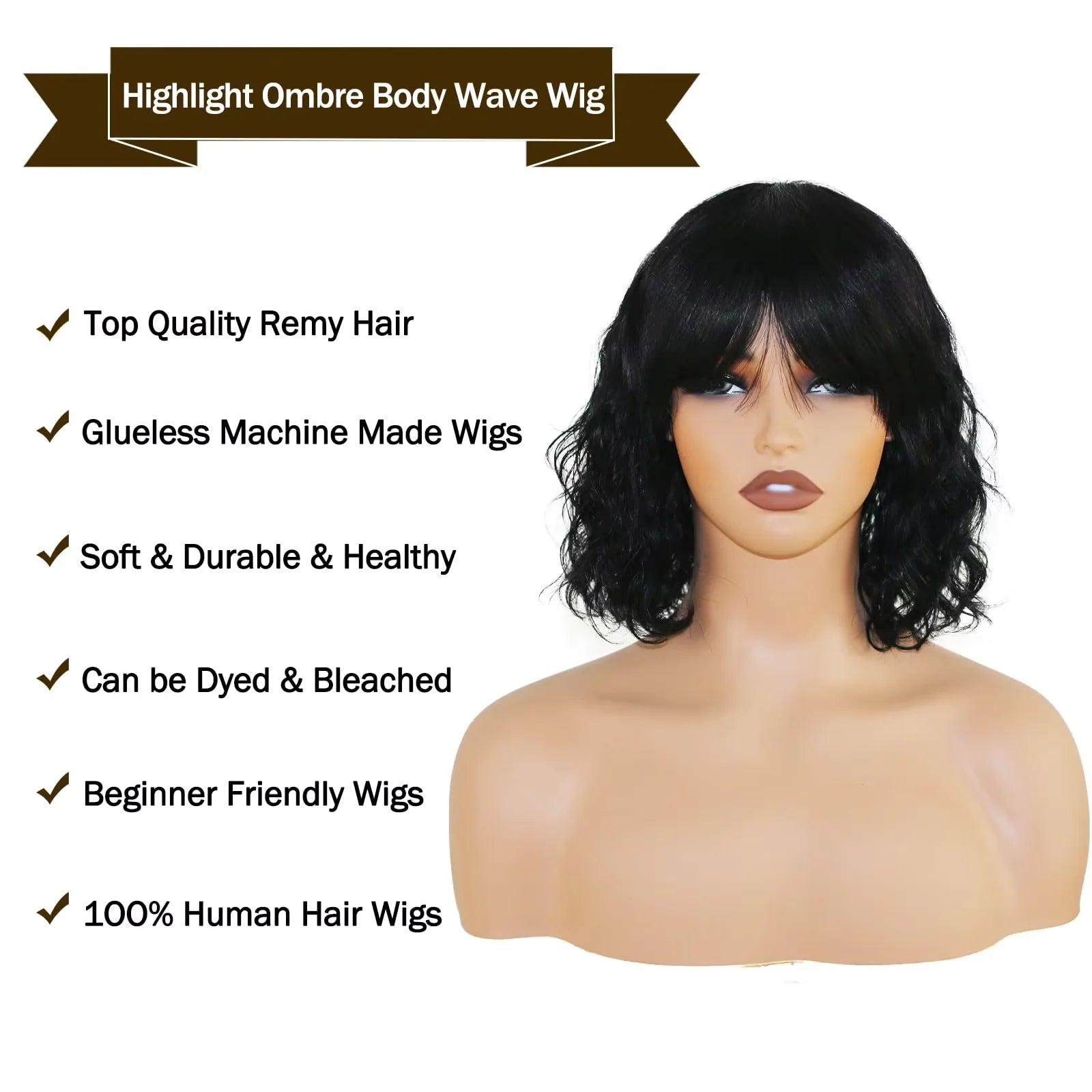 Human hair: body wave bob wig