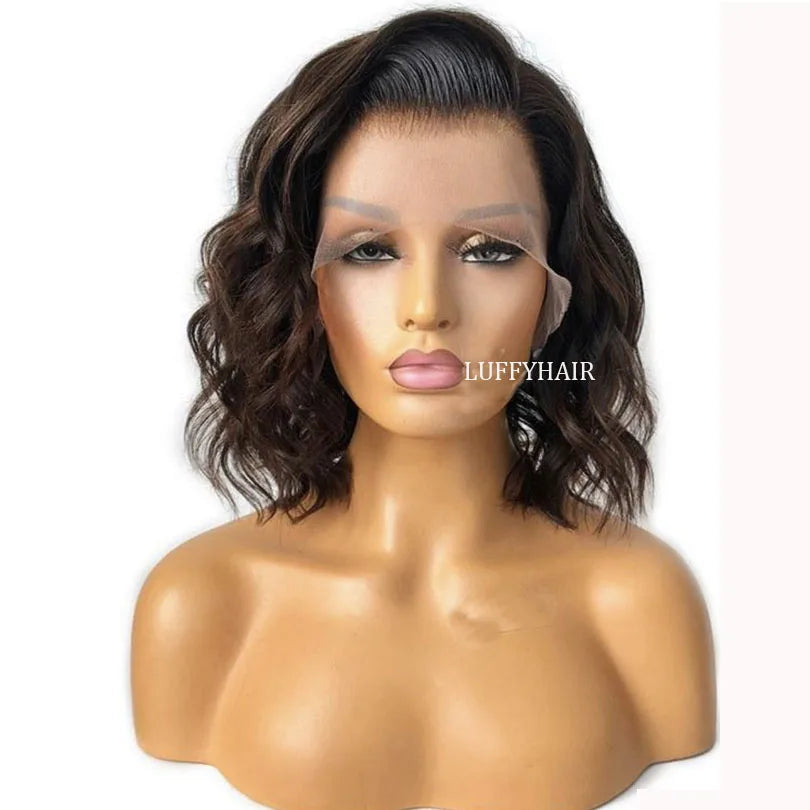 Brown Color Silk Base Full Lac Wig Short Wave Virgin Brazilian Human Hair 5x4.5 Silk Top Full Lace Wigs Pre Plucked