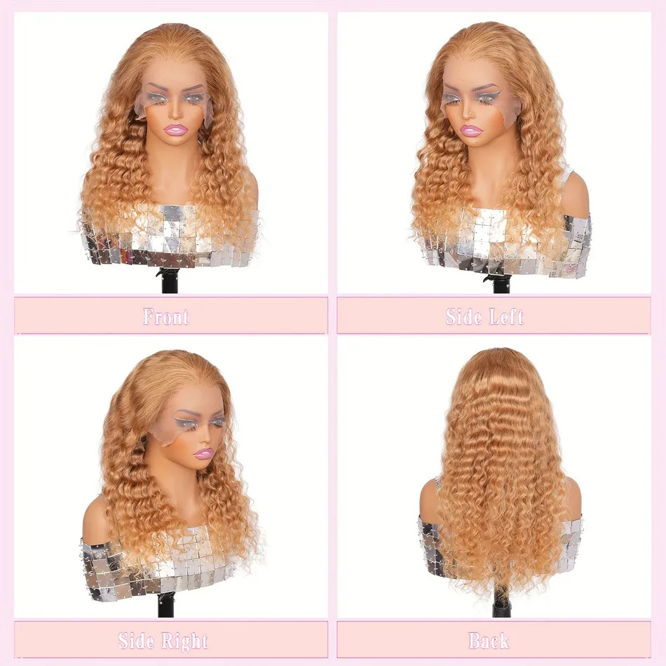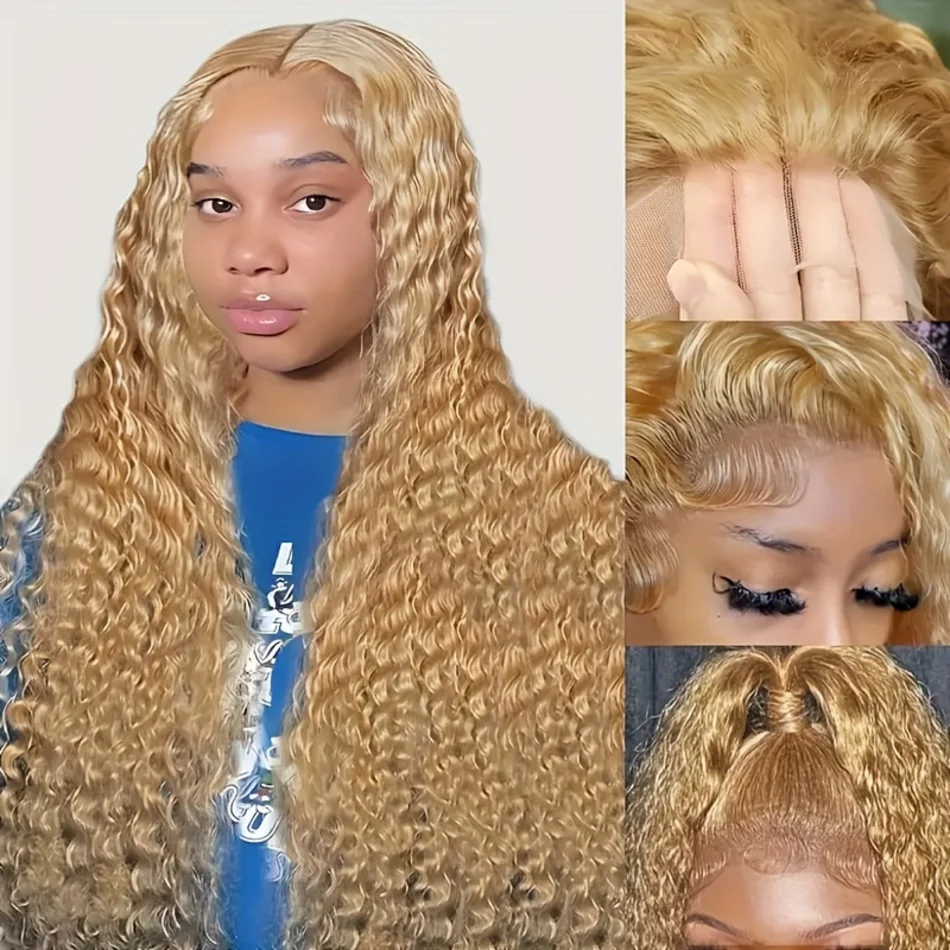 Deep Wave Honey Blonde Wig Human Hair 13X6 Lace Front Wig Curly Colored 27 Hd Lace Frontal Wig PrePlucked 250 Density 30 38 Inch