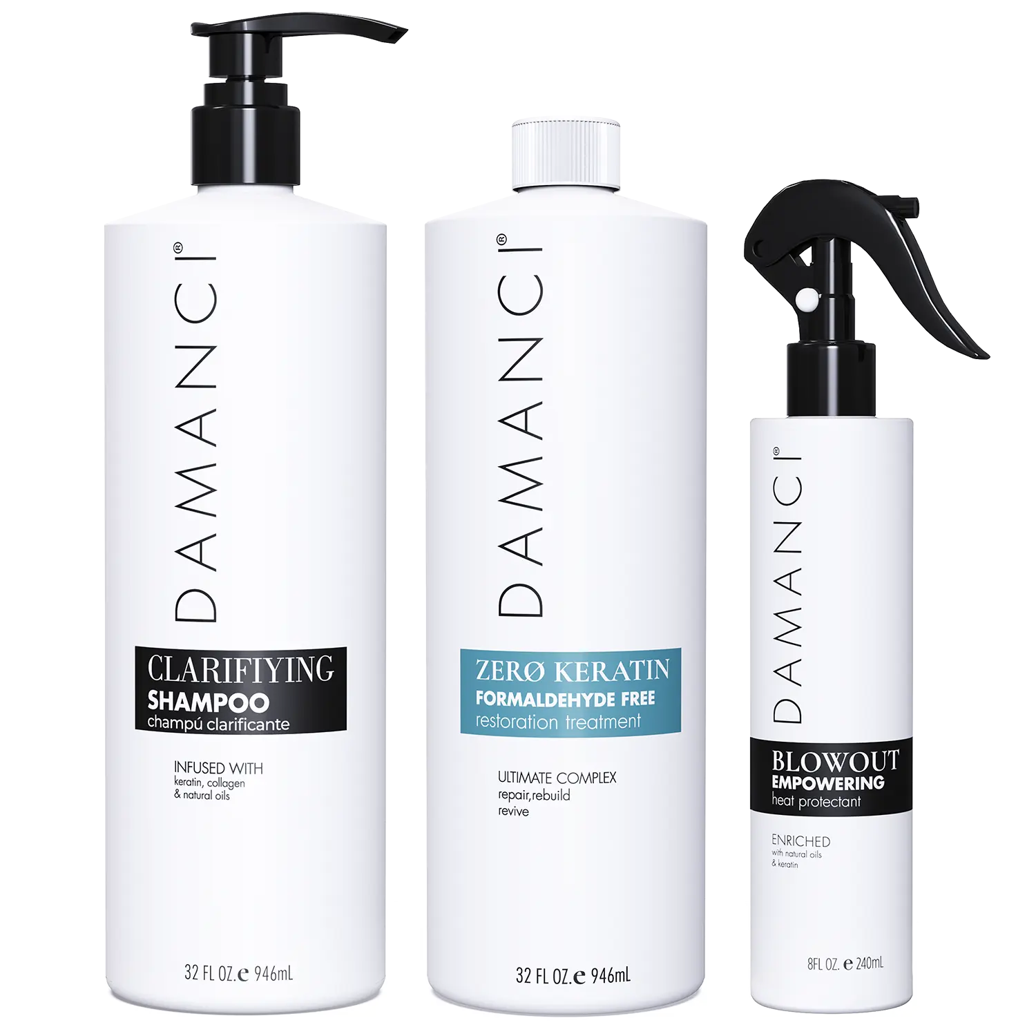 Our Formaldehyde-free Keratin treatment is enriched with organic coconut oil, hydrolyzed keratin, collagen and other natural ingredients to promote hydration and fortify hair. Combine with our time saving heat protectant for the blow dry phase, and get all that healthy moisture, brightness and vitality in half the time!